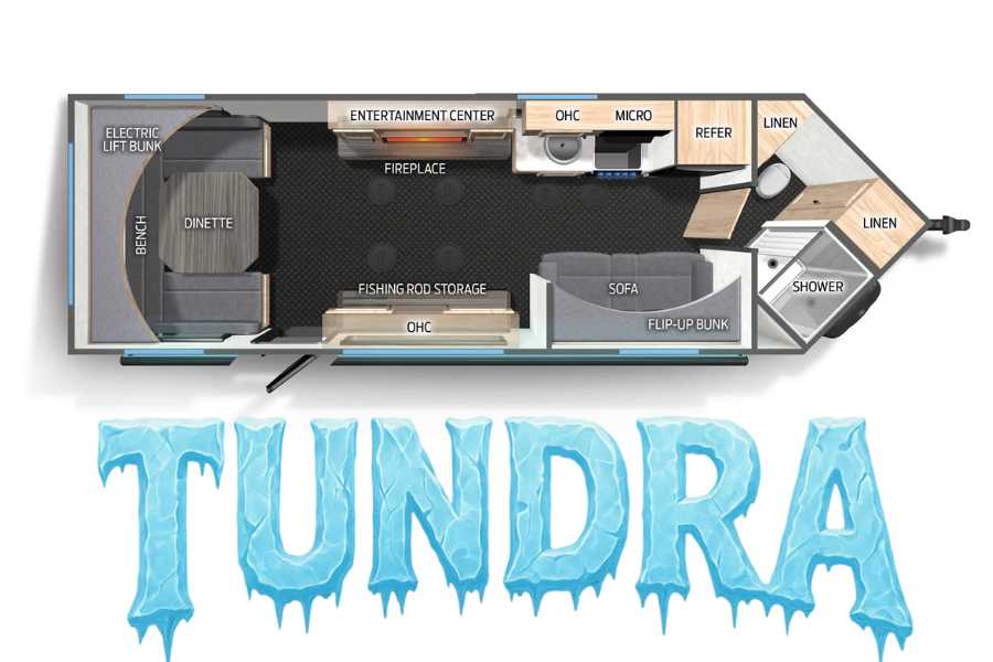 Step into comfort on the ice with Tundra, our 2023 Grey Wolf 21GP ice fishing house, perfectly situated near Minnesota’s legendary Leech Lake, Upper Red, and Lake Winnie. Designed for both serious anglers and families looking for a cozy winter getaway, Tundra combines modern amenities with rugged reliability. Inside, you’ll find a warm, spacious interior with multiple fishing holes, comfortable seating, and all the conveniences you need to make your time on the lake unforgettable. Whether you’re chasing trophy walleye or simply enjoying the beauty of a frozen Minnesota landscape, Tundra offers the ideal blend of adventure and relaxation. Book now for the trip of a lifetime! (Ice roads must approve double axels for use on ice-check with your ice road/resort and follow us on Facebook for updates, fishing reports, specials and more.
